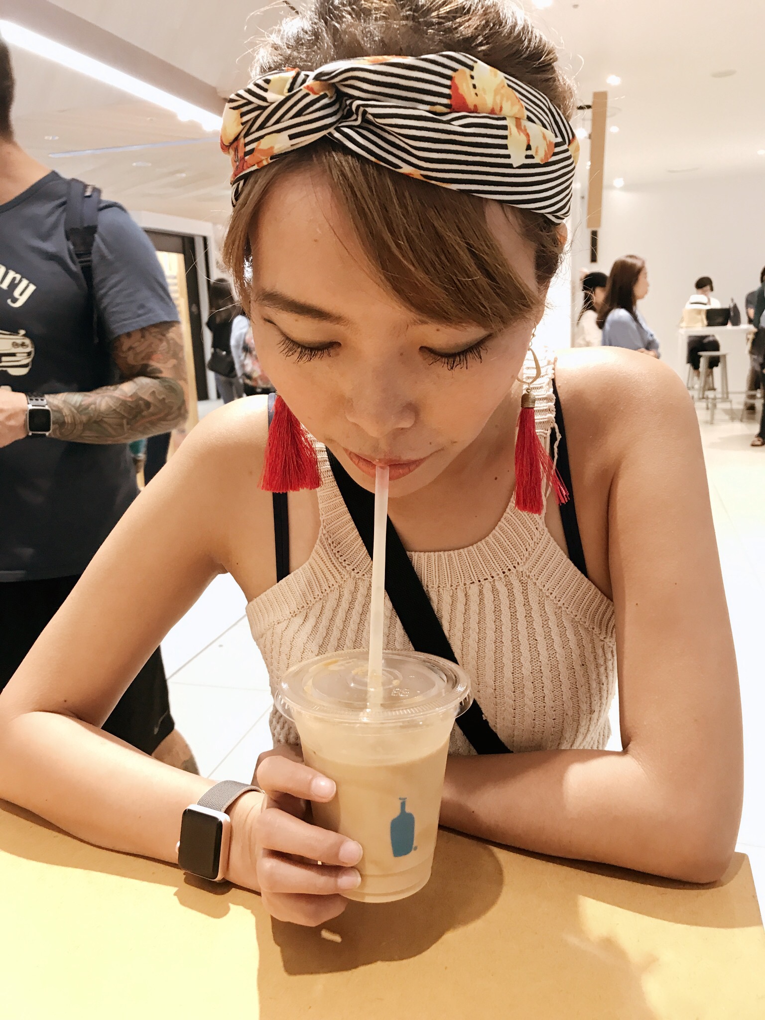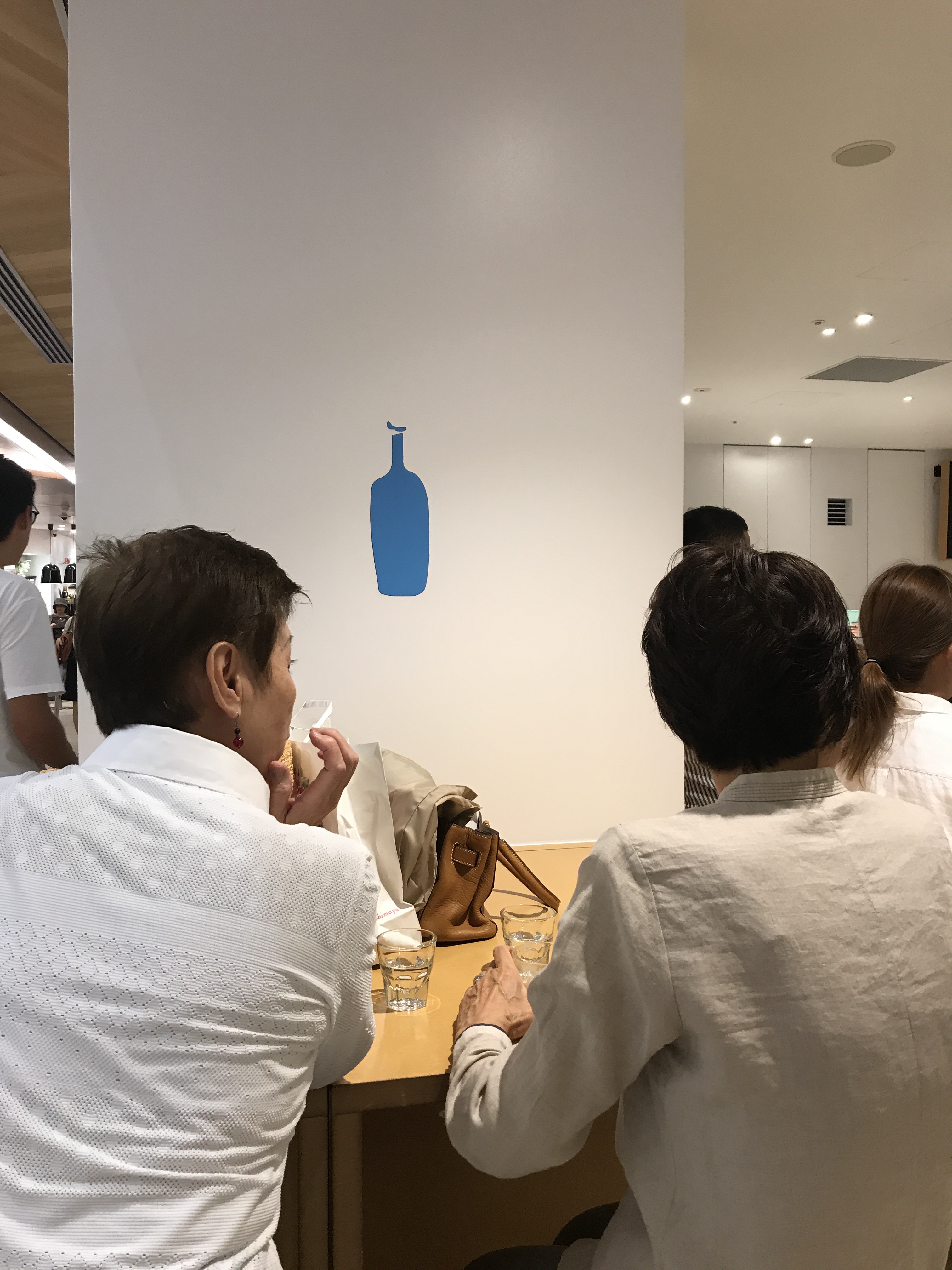 大概等了15-20分鐘,我點的是cafe latte,一拿到有藍瓶子的杯子就好開心啊,即刻拍照作紀念,完成本次東京之旅的 check list 之一。