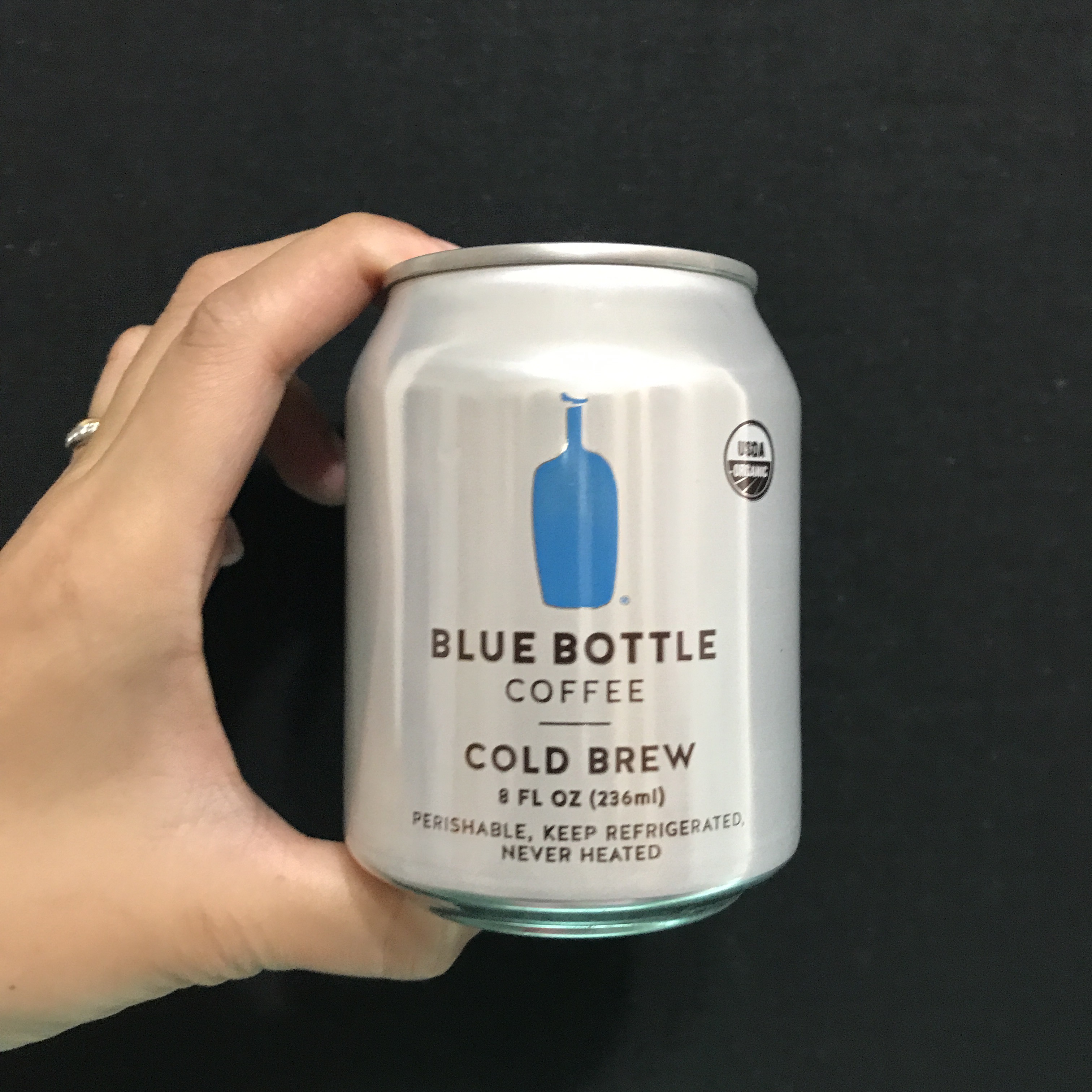 在等待的時候,中間就稍微逛逛店內,設計簡約而俐落,色調也很清爽,有販售一些咖啡豆、杯子等周邊商品,我買了兩罐據說是限量的「Blue Bottle Cold Brew 冰滴咖啡」做紀念。