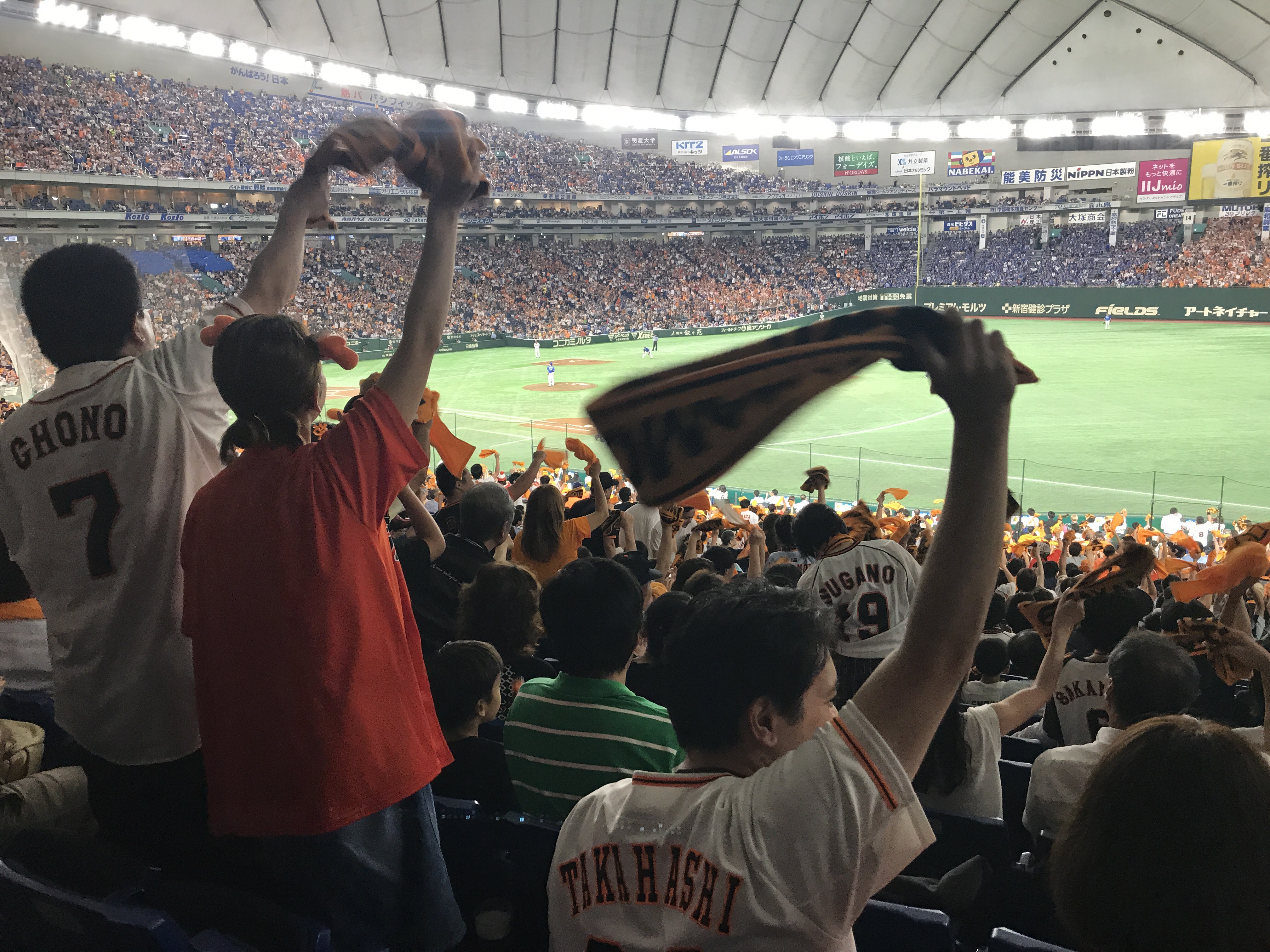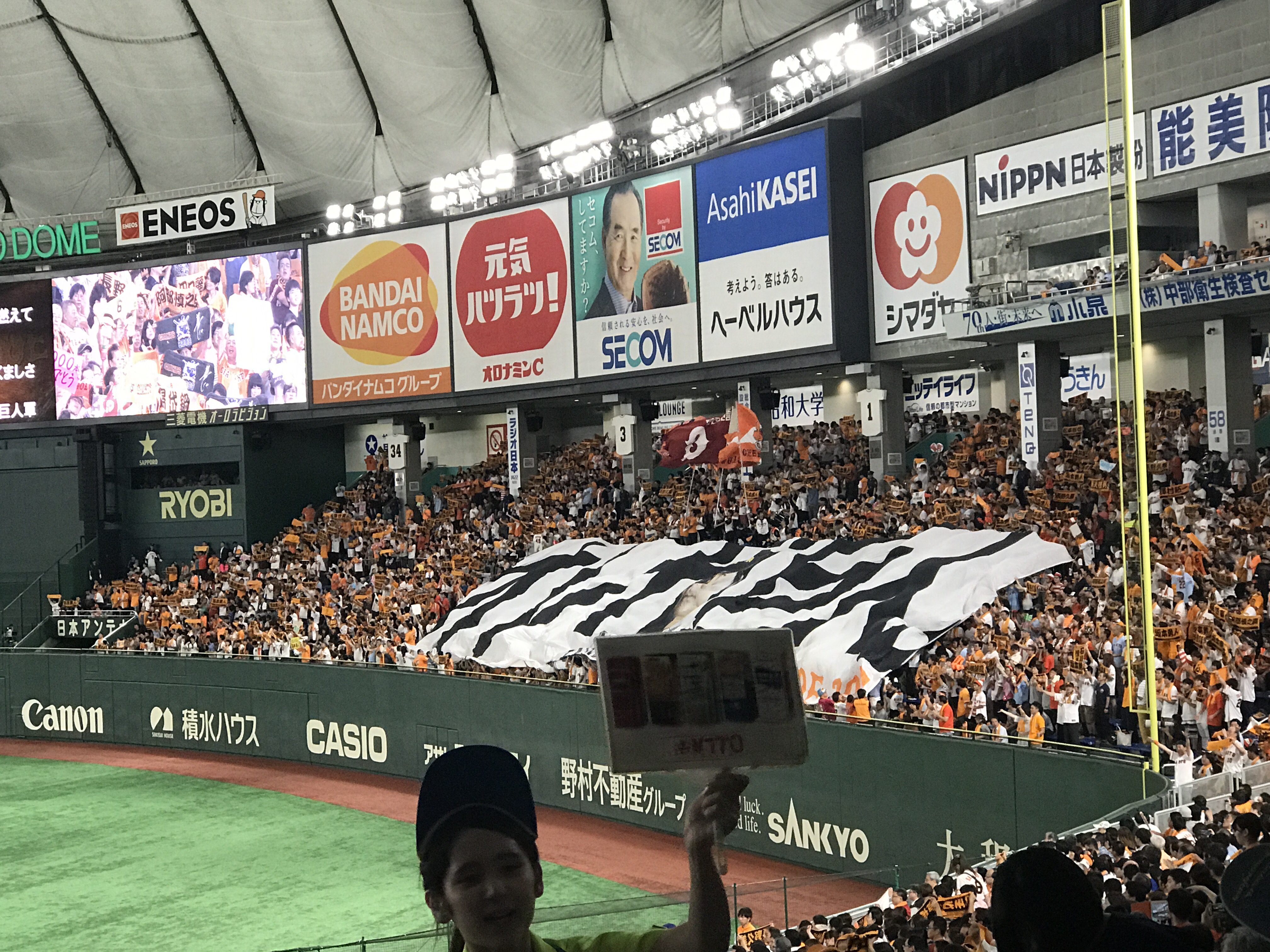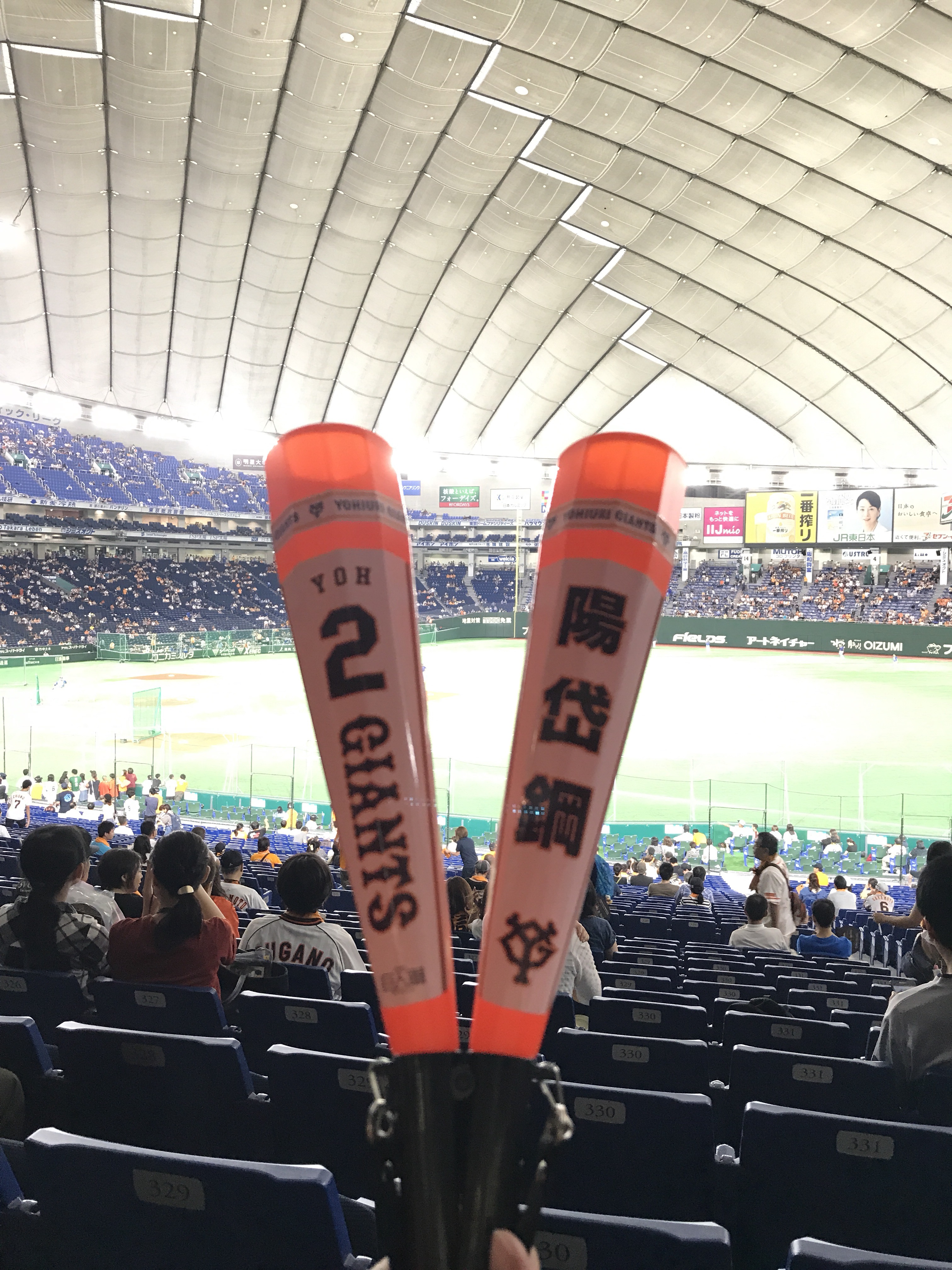 之前在台灣進場看過幾次,其中也有國際賽事,但第一次到日本、到東京巨蛋看球還是很震撼,球場上的氣氛、球迷、無論主場客場的都一樣熱情,橫濱DeNA在外野遠遠一小角的客隊應援卻響徹整個巨蛋,第一次在國外看到來自台灣的選手那樣拼命還打出三分全壘打、跟著全場日本人大喊「陽岱鋼」的感動!熱血滿點!氣氛滿點!