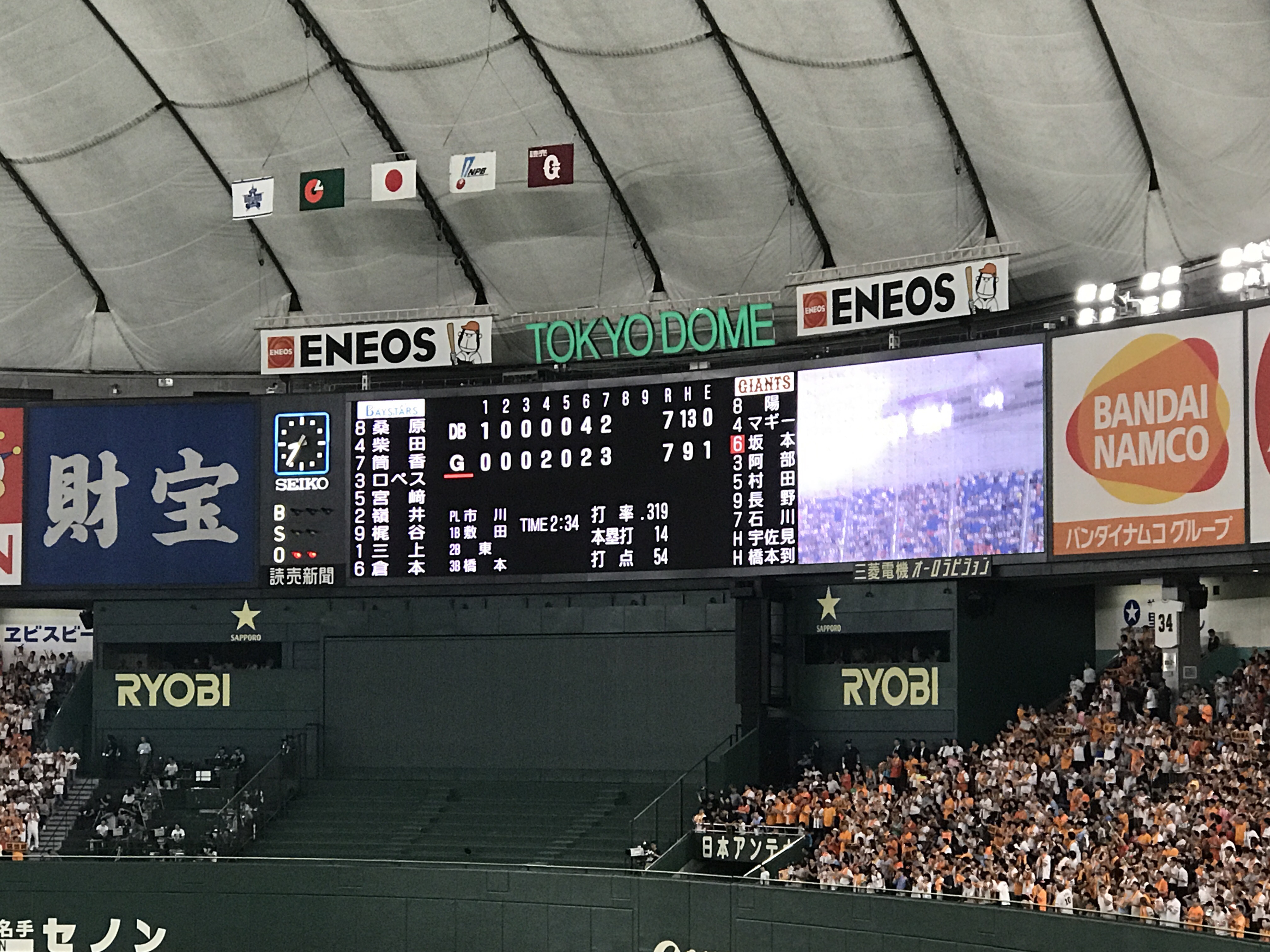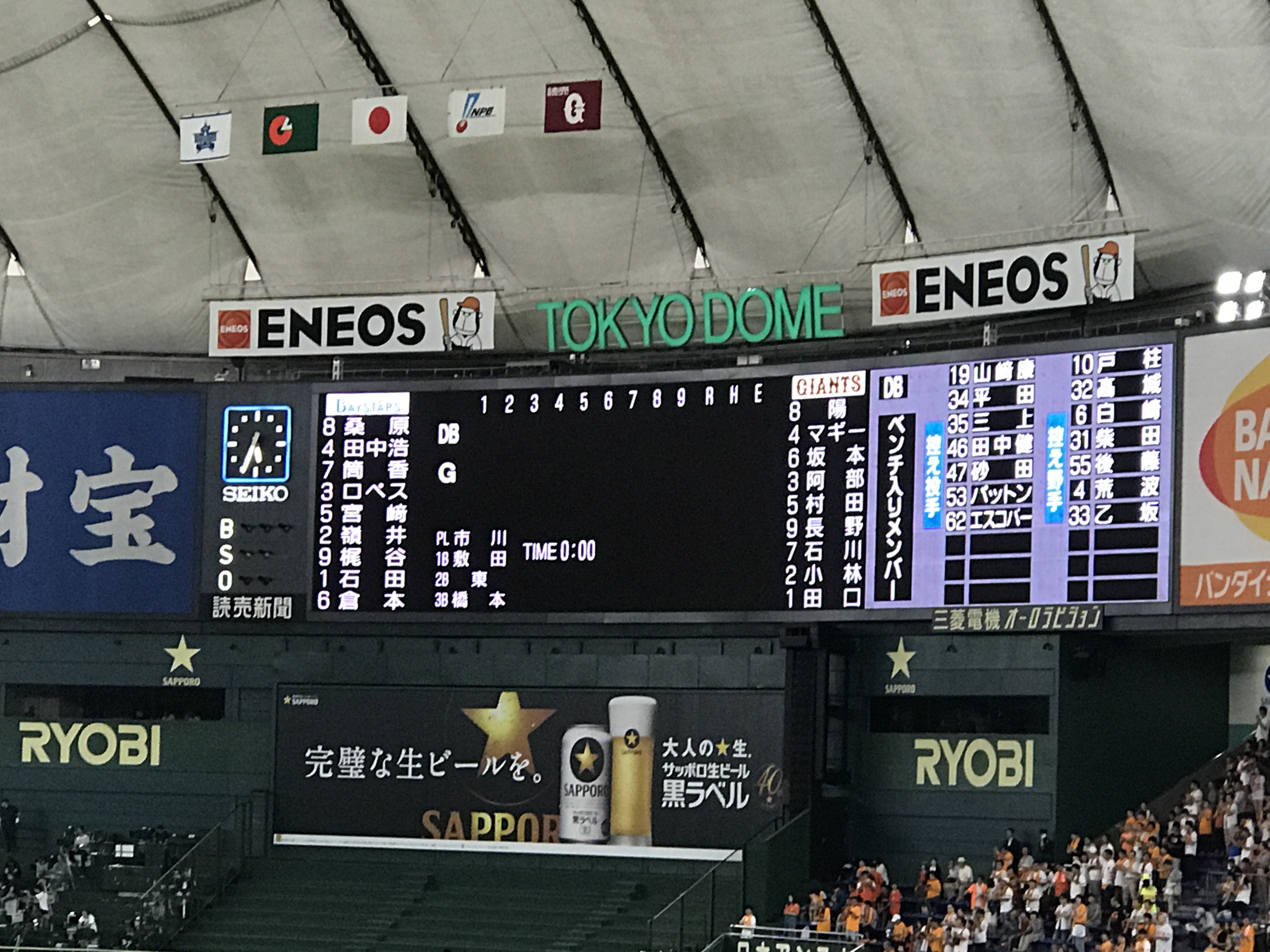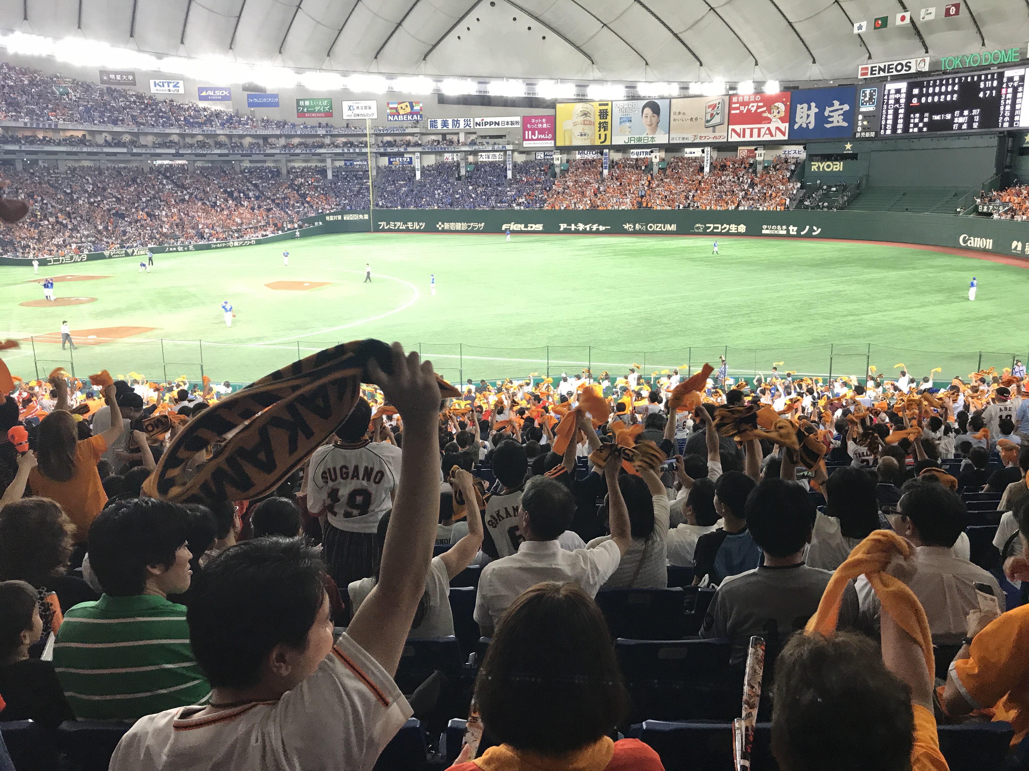 之前在台灣進場看過幾次,其中也有國際賽事,但第一次到日本、到東京巨蛋看球還是很震撼,球場上的氣氛、球迷、無論主場客場的都一樣熱情,橫濱DeNA在外野遠遠一小角的客隊應援卻響徹整個巨蛋,第一次在國外看到來自台灣的選手那樣拼命還打出三分全壘打、跟著全場日本人大喊「陽岱鋼」的感動!熱血滿點!氣氛滿點!