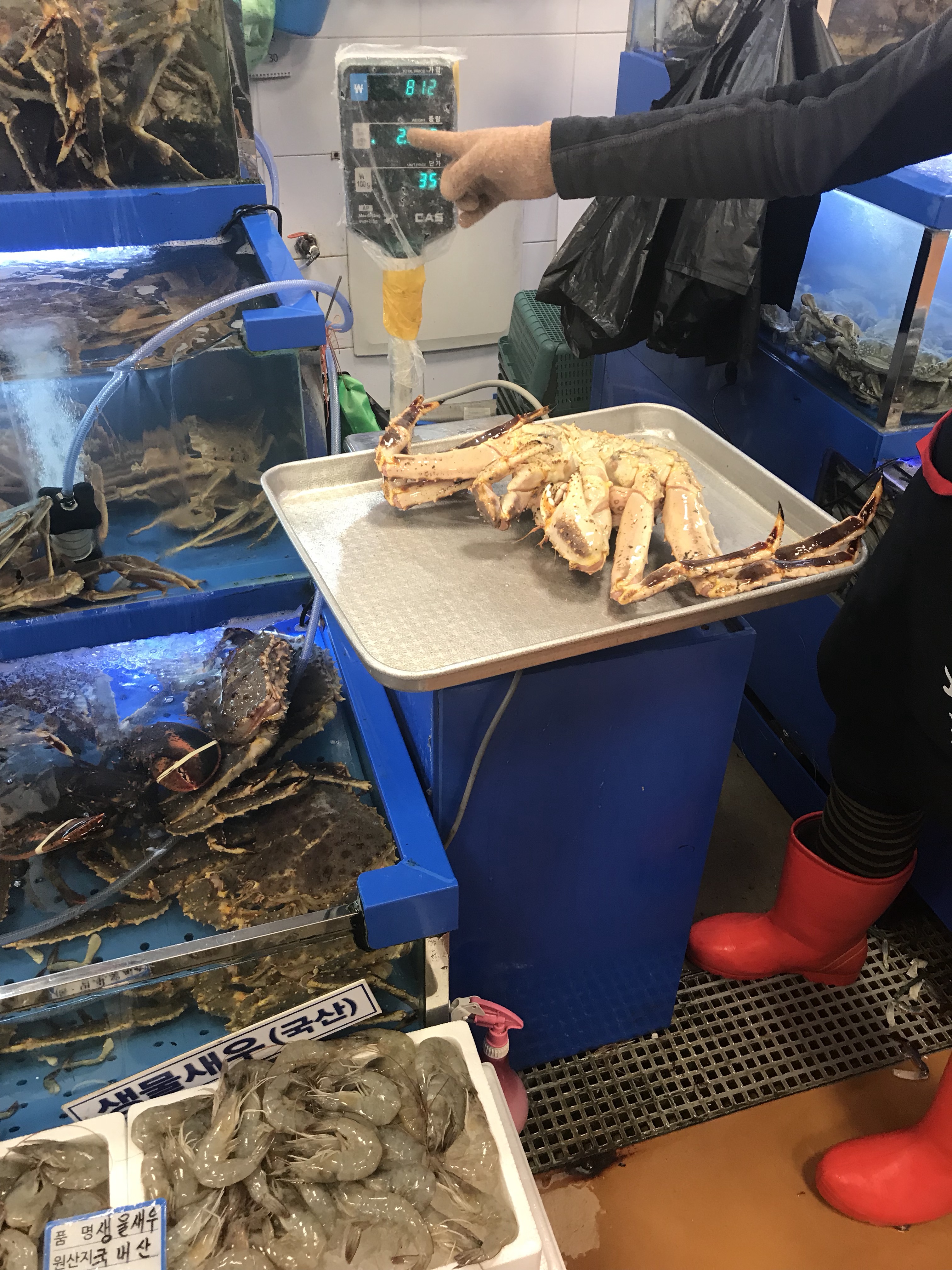 再跟大媽搏感情談天之後,選定了幾款想吃的海鮮,分別是帝王蟹、海菠蘿、鯛魚跟活章魚。
