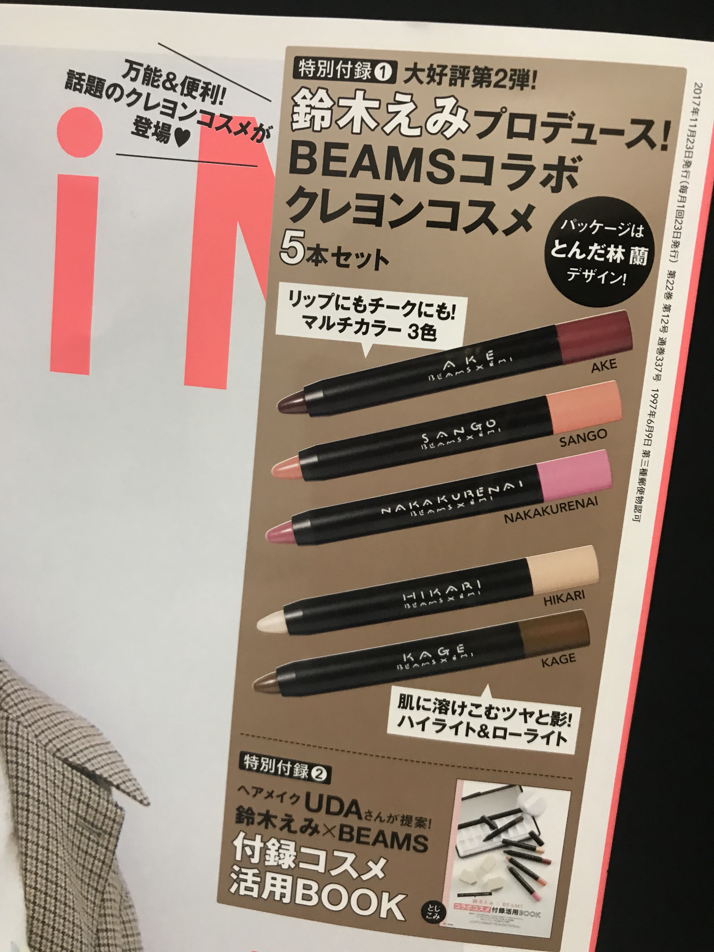 12月號的SPRiNG附錄贈品是BEAMS x 鈴木えみ監製的唇蠟筆五色組!看到五色心想也太福了吧!五種顏色都好想嘗試。