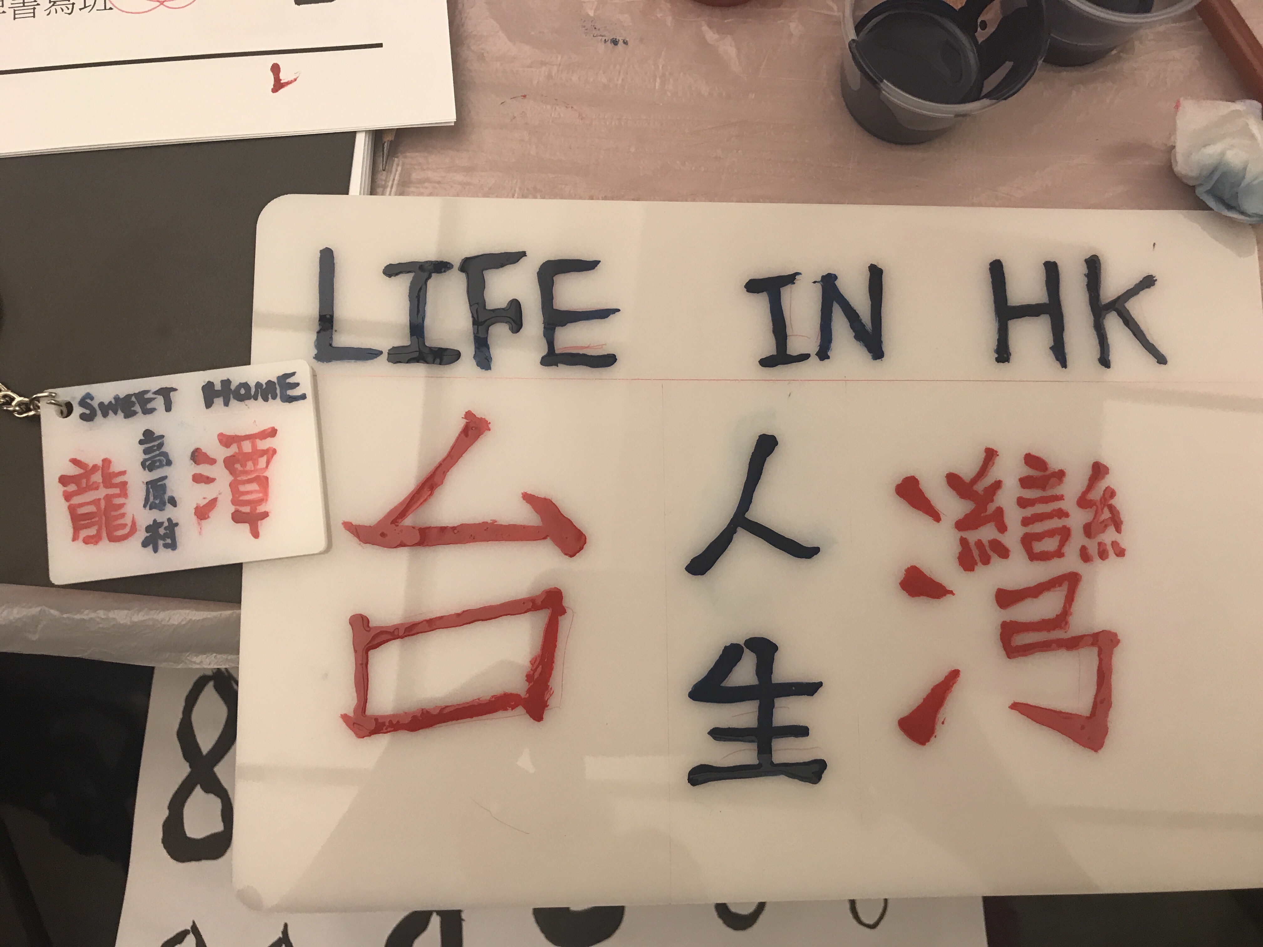 其實在上課之前我就稍微想好要寫的字了,很怕2小時的課程最後沒靈感,打算把「台灣」與「香港」結合,當作在香港生活2年目的紀念。