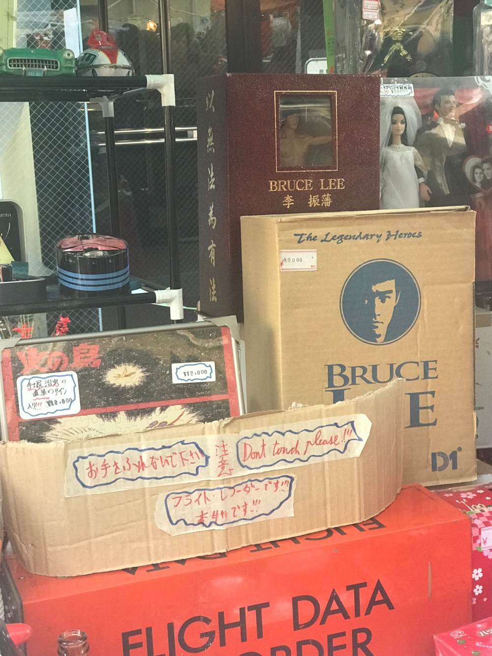 我個人特別喜歡超懷舊玩具跟古書的攤子,很多都要價不斐就是,是一種識貨的人會掏大錢買的概念,例如八萬日幣的李小龍超經典公仔。