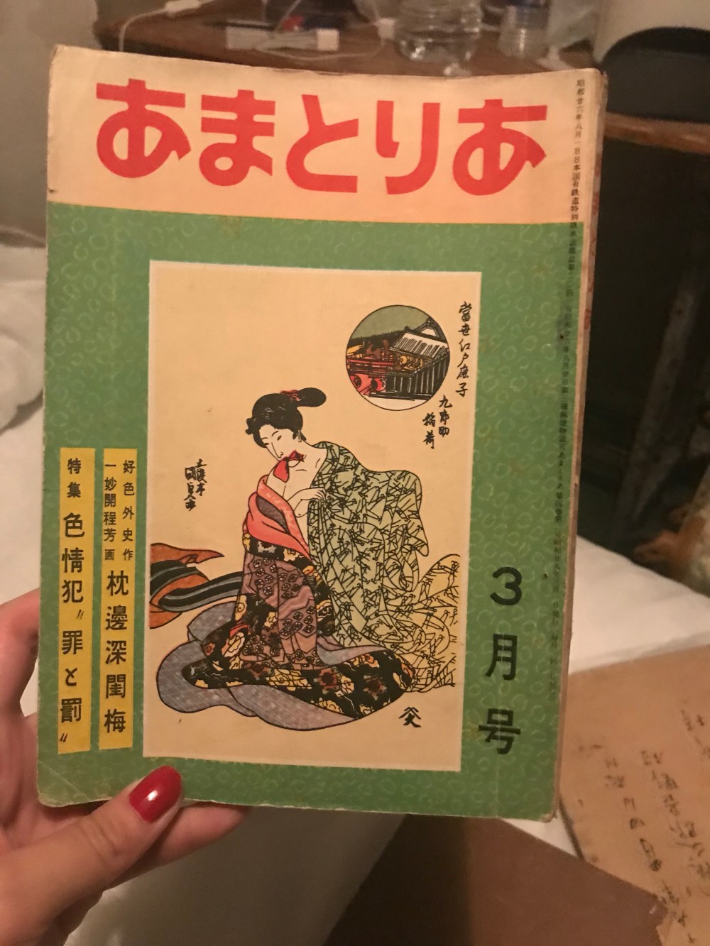 然後在一個小攤子買到50年前的情色文學,攤主發現我們是外國人還一直問我們知道那是什麼書嗎?可能以為我們是喜歡書裡面的浮世繪插畫哈哈,非常的幽默。