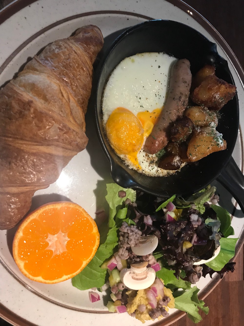 其中一天早晨,我們坐在這邊吃早餐,點了一個早餐set是800日幣,跟「Nui」一樣附有牛角麵包,鐵鍋煎蛋特別香,喜歡馬鈴薯嫩嫩脆脆的口感。