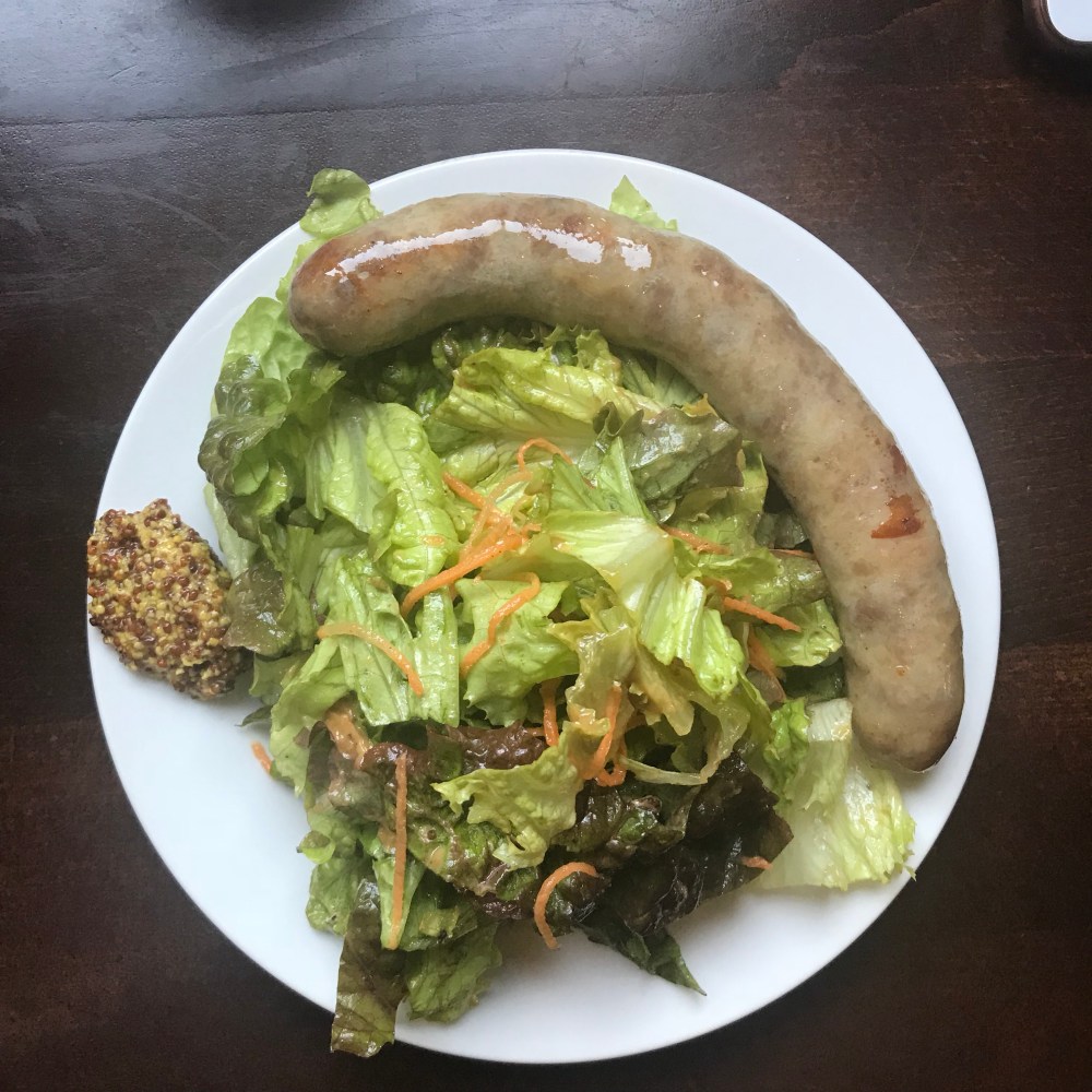 我們分別點了menu上的 自家製パテドカンパーニュ (Pate de campagne)與 自家製ソーセージ(sausage),兩款都附有沙拉(サラダ添え)。
