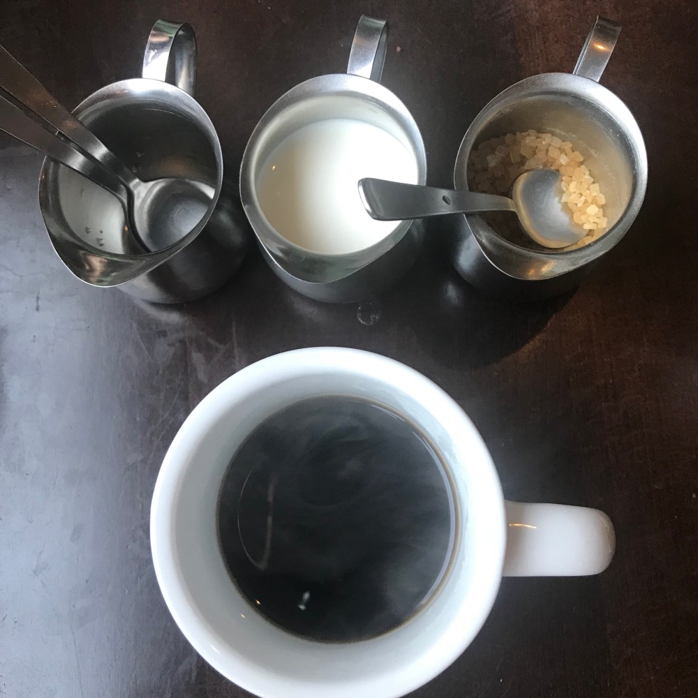 咖啡並沒有太驚豔 (有可能是因為料理太好吃了!),但我很喜歡他的杯子跟用來裝糖跟牛奶的罐子。