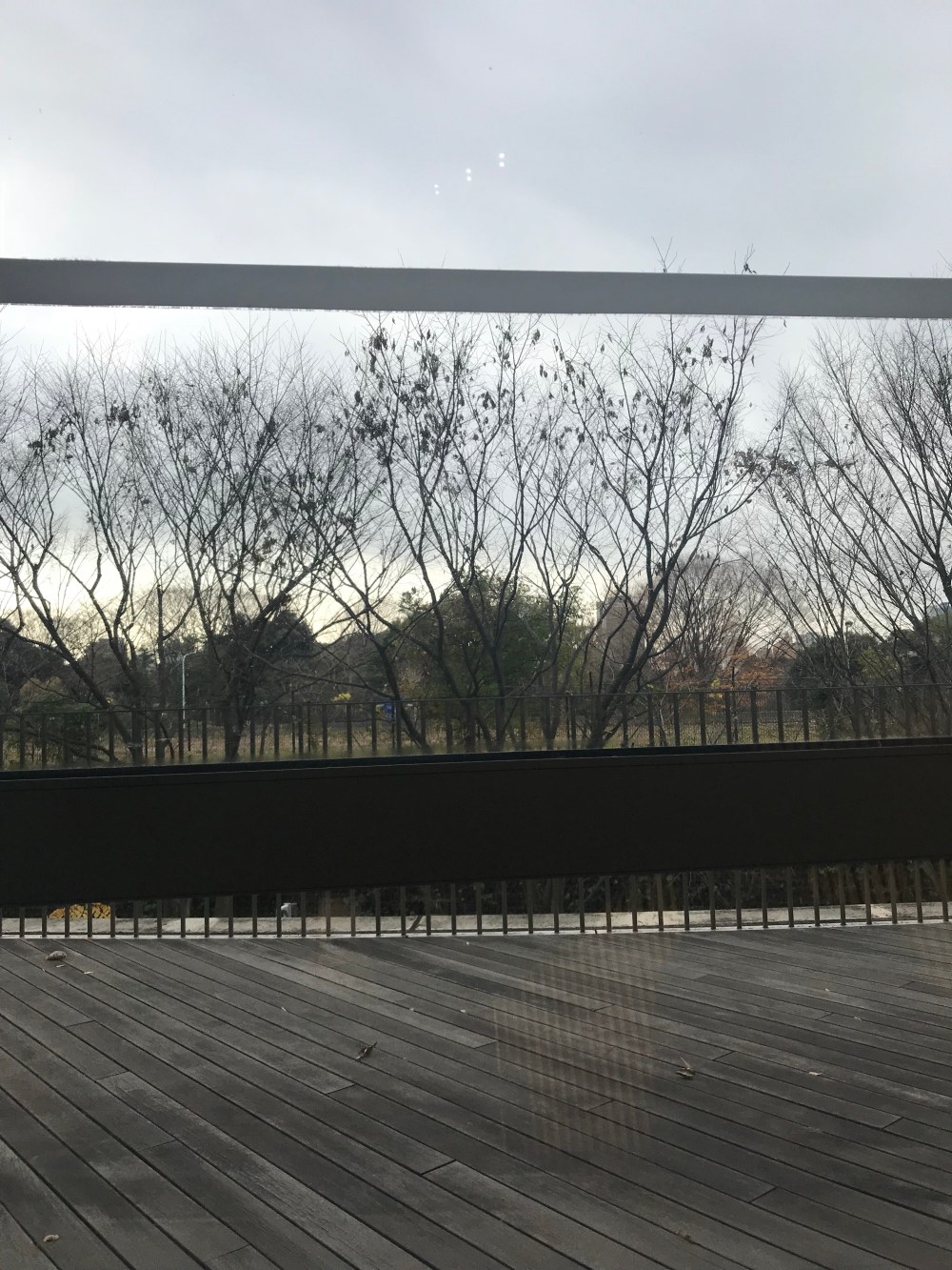 國立新美術館的建築很美,不是氣派華麗到不行的建築,卻讓人靜靜坐在一角也感到很舒服很自在的那種,挑高的天花板與落地窗,坐著看窗外冬日的公園景色,感受溫暖灑落的陽光。