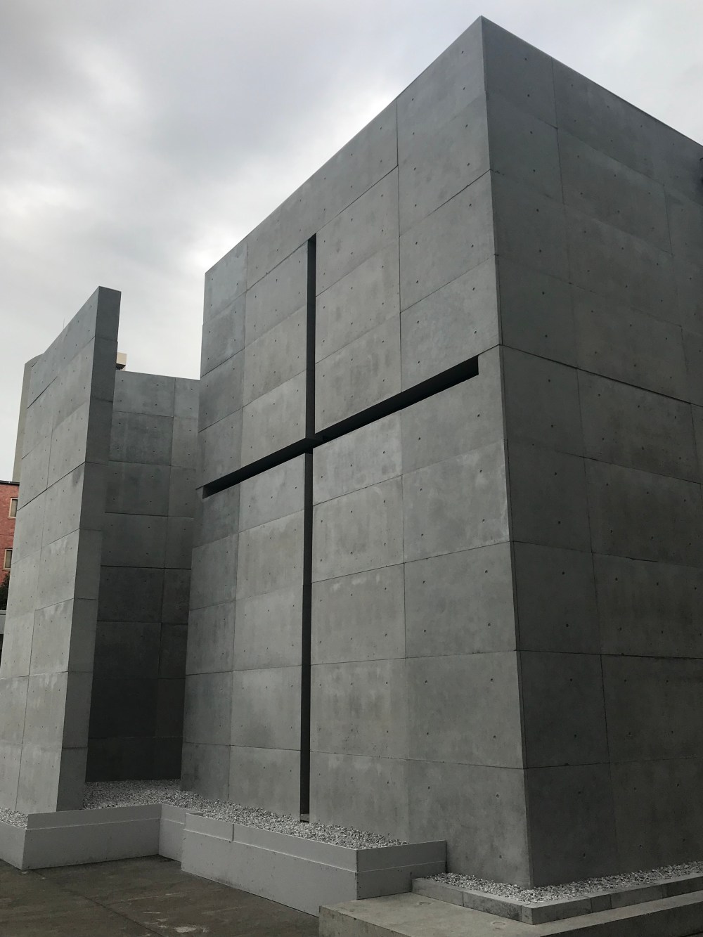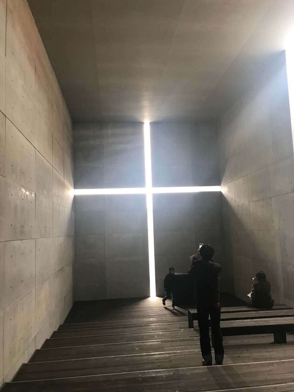 安藤忠雄的展覽都是不能拍照的,除了戶外1:1真實重現的光之教堂之外。