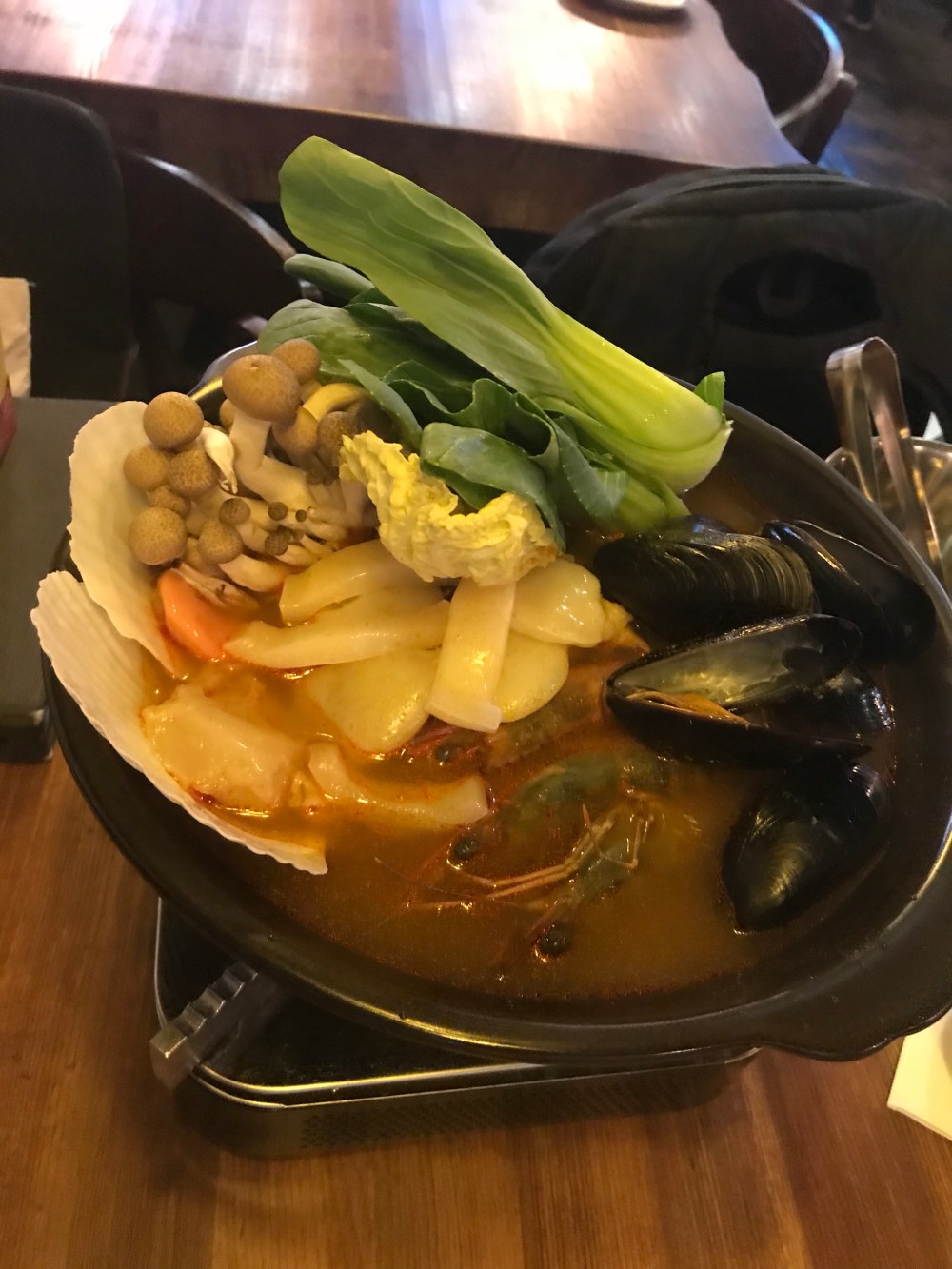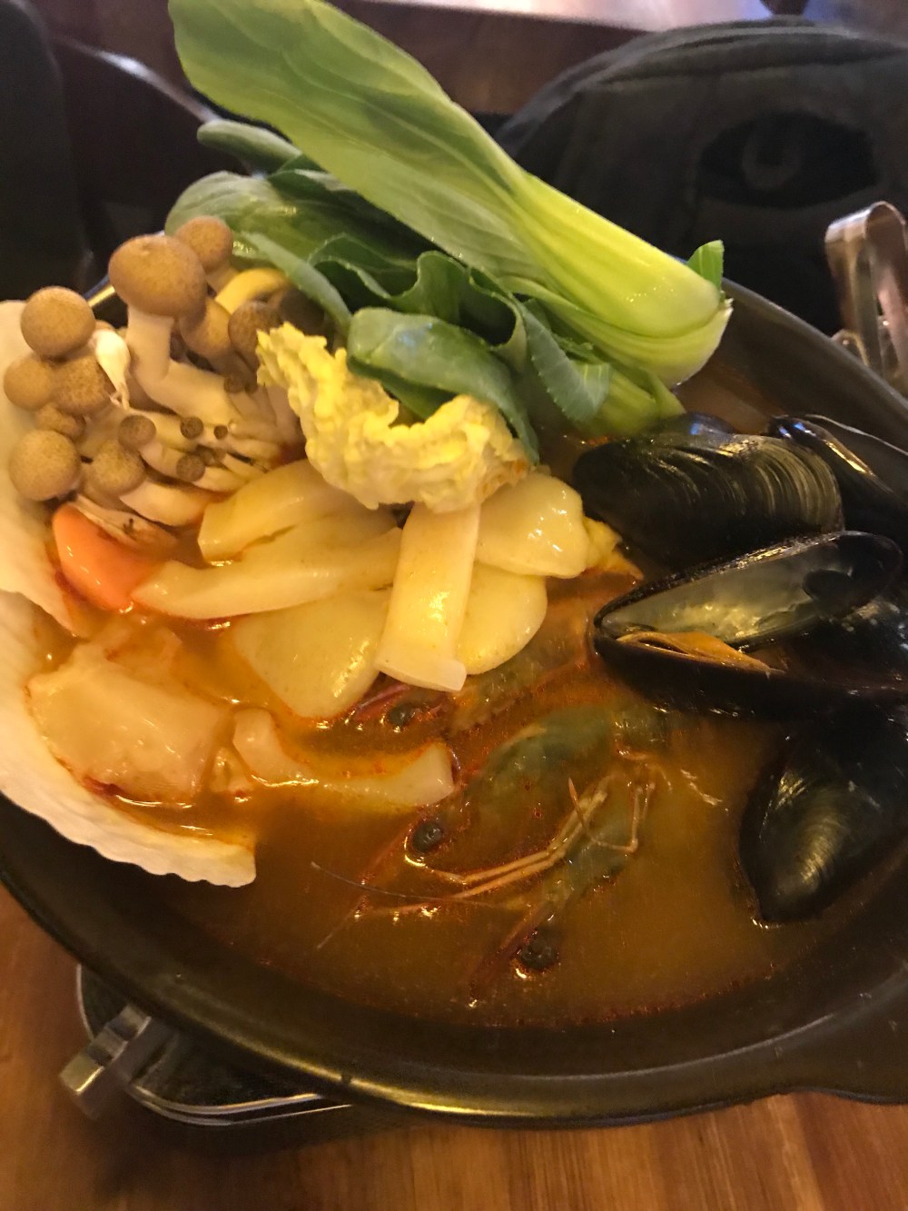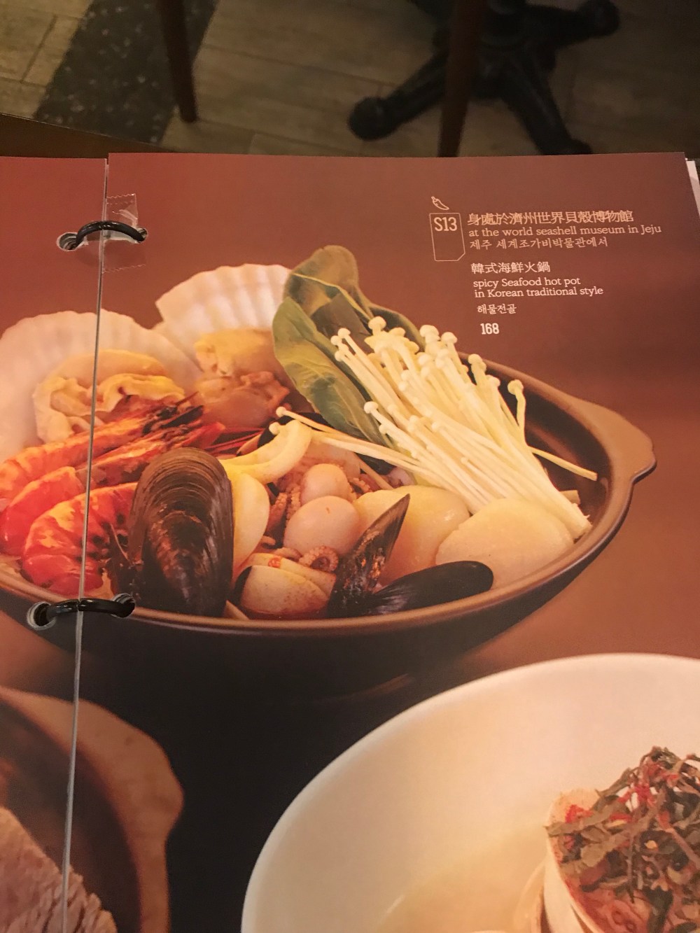 還有為了ㄧ了沒有吃到蒸氣火鍋的宿願,點的海鮮火鍋「身處於濟州世界貝殼博物館」。