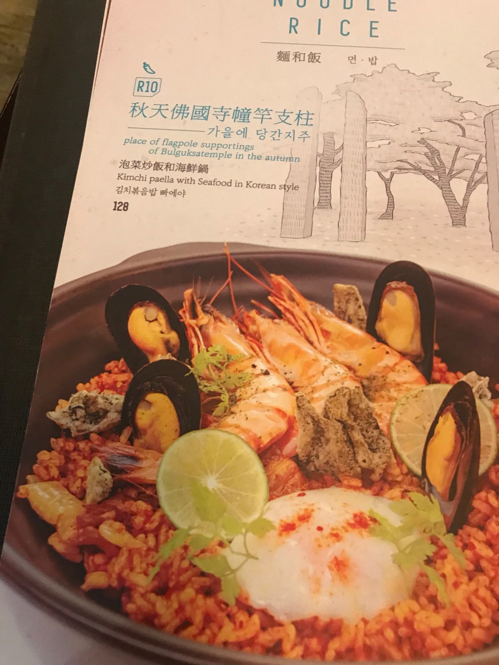 韓式海鮮飯也是一絕「秋天佛國寺幢竿支柱」,不知道是不是黃澄澄秋天顏色的外表,才這樣命名?