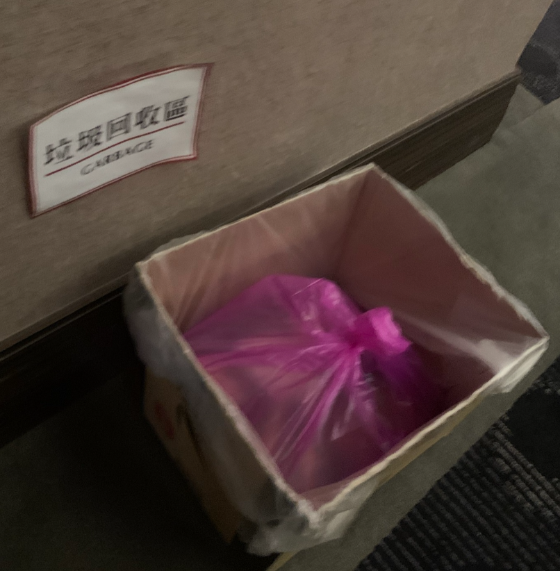 垃圾放置區就在門外,有放一個紙箱。