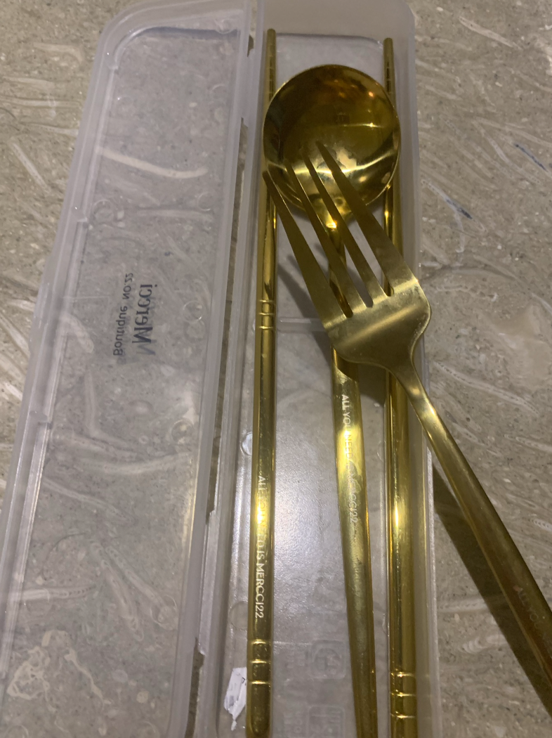 櫃子下方是冰箱還有放滿15天備品跟茶包的抽屜,但因為我很多用品都有攜帶慣用的,所以幾乎沒有用到,另外有準備環保餐具。