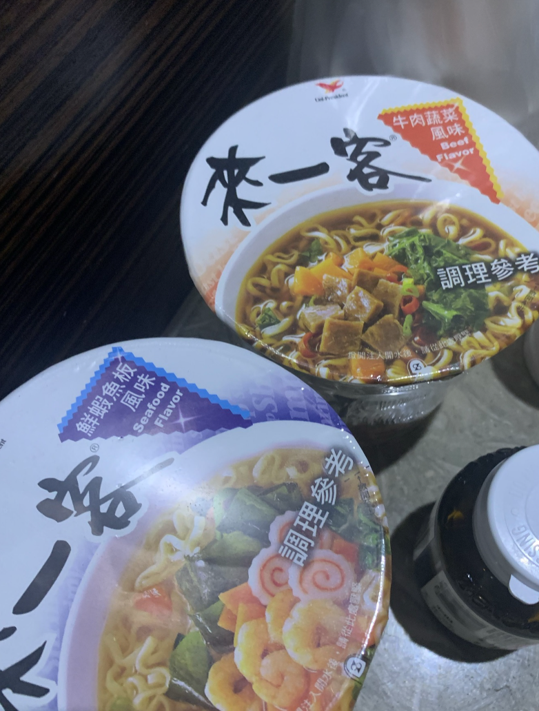 一進房間會看到辦公桌上放著全新的體溫計,用來在居家檢疫時期量體溫,所以不用另外準備,還有貼心的贈送小點心跟兩杯來一客泡麵,好懷念的台灣味。