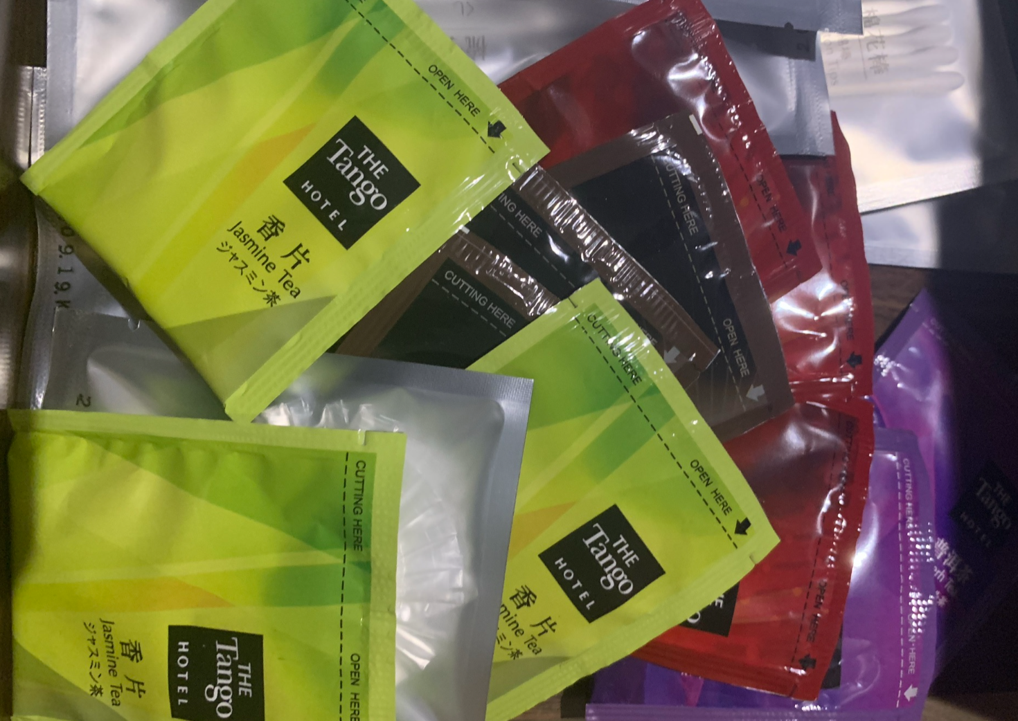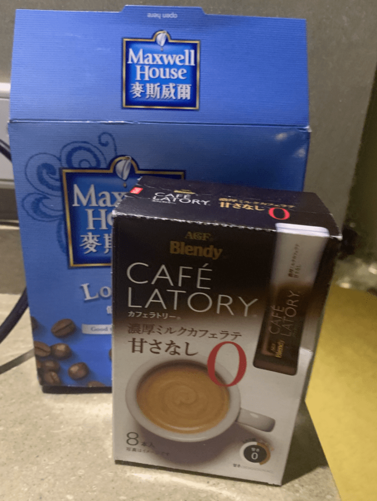 除了飯店提供的茶包以外,我還自備咖啡沖泡包,上班需要提神時比較方便。