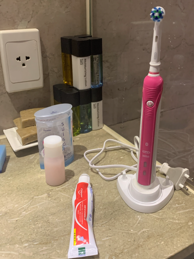 我自己有另外準備常用的物品,打造在家的舒適感(哈),像是電動牙刷、酵素洗臉粉、分裝化妝水、小條牙膏、消毒洗手乳、漱口水,還有泡澡的溫泉粉跟面膜。