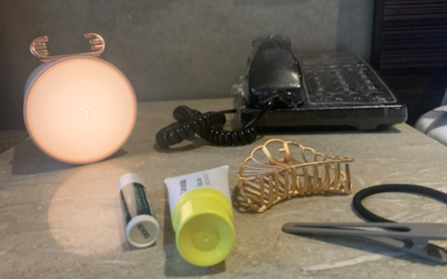床旁邊的小桌子我也放上滿多用品,自備封零食的夾子,體驗後證明我沒帶錯!還有就是藍芽兼夜燈的可愛粉紅小羊,放在床頭可以聽聽 podcast或是youtube放音樂。